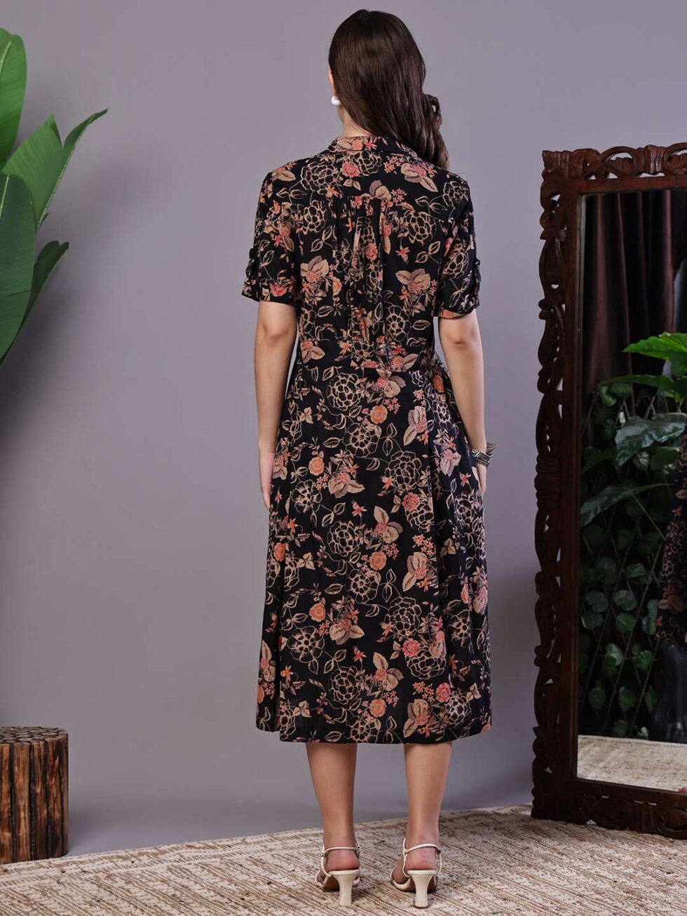 Effortlessly stylish dress with a vibrant abstract print, tie-up shoulder straps, and a chic high-low handkerchief hemline ? perfect for casual days or evening gatherings.
